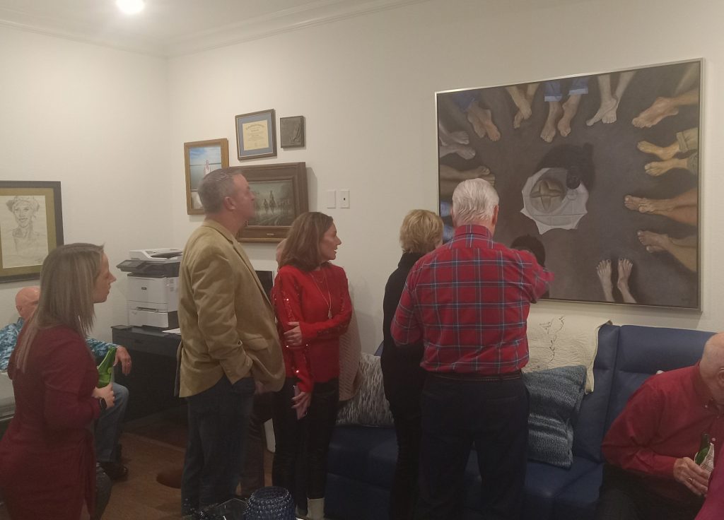 Encounter Gallery paintings are hanging this summer at Redeemer Bible Church in East Dallas. A number of families and folks from St. Bart’s Anglican Church, which is currently co-located there, also stopped by with their children to look at and talk about the paintings and their stories.